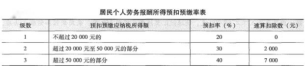 其他资料:居民个人劳务报酬所得预扣预缴率表如下: