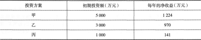 不定项选择题 某建筑工程公司欲在自己的土地上开设商店,以补充任务不足时施工队伍的开支。根据预测,商店的规模可以有甲、乙、丙三种,寿命期均为10年,其初期投资额、每年净收益见下表。已知(P/A,10%,10)=6.144。