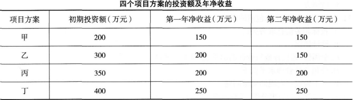 不定项选择题 某企业有四个项目方案,项目寿命期均为2年,基准收益率为10%。各个项目方案的投资额及年净收益见下表。 乙方
