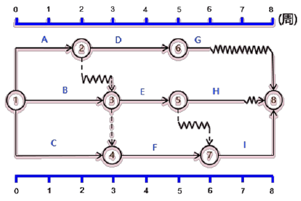 不定项选择题 某双代号时标网络计划图如下图所示:
