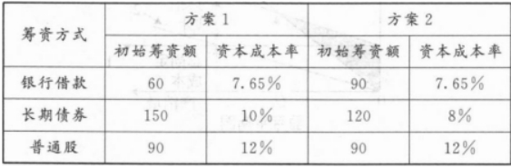 不定项选择题 某企业拟开发一种新产品,需要资本总额为300万元,现有两个筹资组合方案可供选择,两个方案的财务风险都维持在