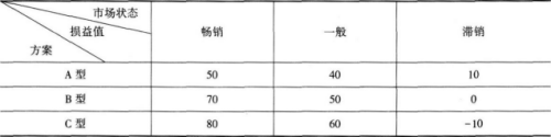 不定项选择题 某手机公司随着业务范围的不断扩大,不仅在手机行业站稳了脚跟,而且通过兼并、联合等形式,使业务进入了计算机、网络、软件等领域,但仍以手机行业业绩突出,并不断针对不同类型人群,推出具有独特功能和款式的新型手机。今年该公司拟推出一款新功能手机,备选样式有A、B、C三种,未来市场状况存在畅销、一般和滞销三种可能,但各种情况发生的概率难以测算。在市场调查的基础上,公司对这三种样式手机的损益状况进行了预测,在不同市场状态下的损益值如下表所示(单位:万元):