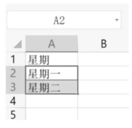 在Excel表格中,如下图所示的数据和选中状态,向下拖拽A3单元格右下角的填充句柄至A5单元格,则A4、A5单元格显示的