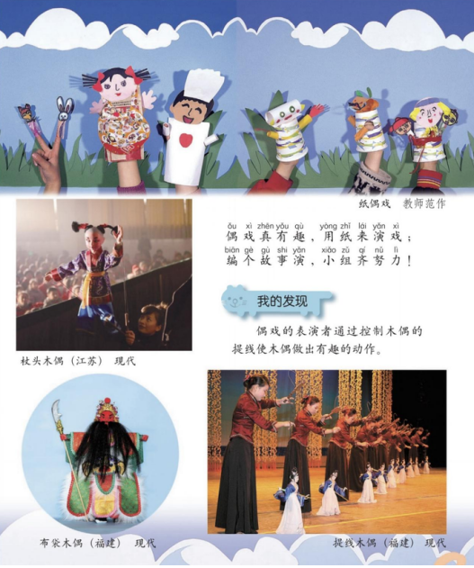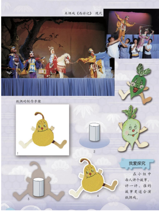 (2)①知道偶戏的表演形式及制作方法,根据故事制作卡通纸偶。