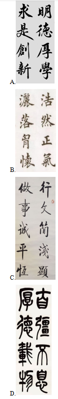 单选题 启功是当代中国书画家、文学史家,书风于端庄静穆中寓劲健飘逸。下列作品中符合启功书法风格的是( )。