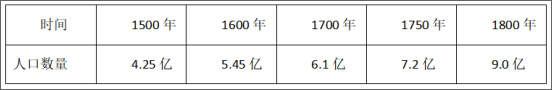 下表为1500年至1800年世界人口变化统计数据,带来这一变化的原因()。