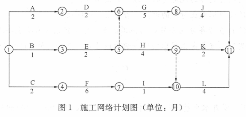 关键线路有两条,一条是:A→D→G→J(或①→②→⑥→⑧→),另一条是:C→F→I→L(或①→④→⑦→⑩→)。
