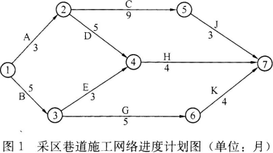4.乙队在12月末完成G工作,施工进度拖延2个月,乙队独立完成K工作(4个月),需工期16个月,比要求工期增加1个月。因甲队可提前一个月完成任务,且K工作可对头掘进。甲队用1个月时间施工K工程。这样乙队用3个月完成K工程。总工期15个月不变。可满足建设单位的施工工期要求。