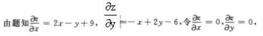 问答题 求函数z=x2-xy+y2+9x一6y+20的极值.