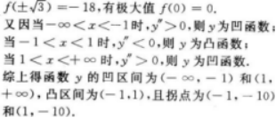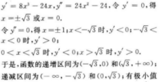 问答题 确定函数y=2x4-12x2的单调区间、极值及函数曲线的凸凹性区间和拐点.