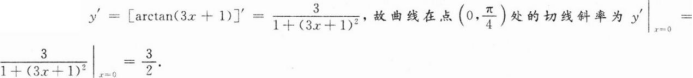 填空题 曲线y=arctan(3x+1)在点(0,)处切线的斜率为