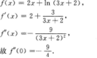 问答题 设函数(x)=2x+ln(3x+2),求"(0).