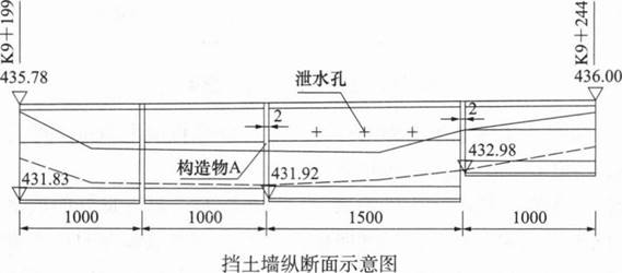 案例题 某施工单位承建某公路路基工程,其中k9+199~k9+244右侧为挡土墙,挡土墙纵断面示意如下图所示。