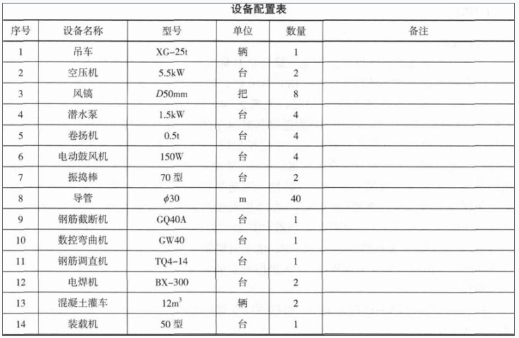 3.用于挖桩的设备有空压机、风镐、潜水泵、卷扬机、电动鼓风机。