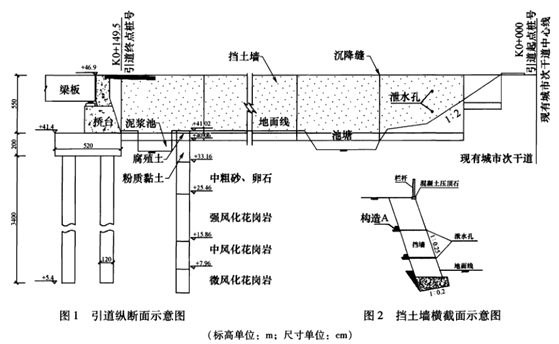 4.图2所示挡土墙属于哪种结构形式(类型)?写出图2中构造A的名称。