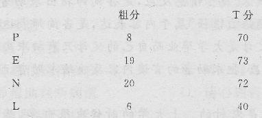 单选题 下面是某求助者的EPQ测验结果如下。 如果一个人在EPQ某分量表上的得分介于38.5和43.3之间或介于56.7