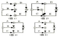某双代号网络图有A、B、C、D、E五项工作,其中A、B完成后D开始,B、C完成后E开始,能够正确表达上述逻辑关系的图形是( )。