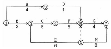 某双代号网络图如下图所示,单位(天),其计算工期为( )天。