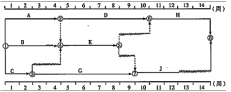 某工程项目双代号时标网络计划如下图所示,其中工作E的总时差和自由时差,分别为( )周。
