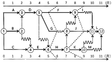 E 工作K在第9月底检查时拖后2个月,影响工期1个月