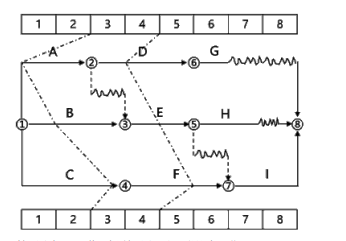某项目时标网络计划第2、4周末实际进度前锋线如下图,关于该项目进度情况的说法,正确的有( )。