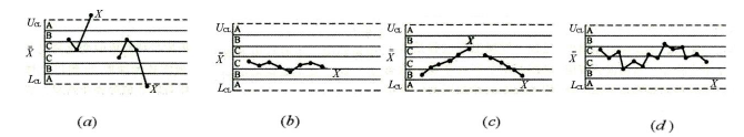 单选题 根据《常规控制图》,下述检验模式所描述的情形表明生产过程处于正常状态的是( )。