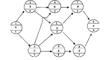 根据某工程项目的各项工作的持续时间和工作之间的逻辑关系,编制的单代号网络计划如下图所示,工作K的最早完成和最迟完成时间分别为( )个月。