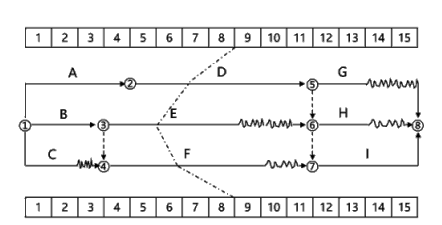 某工程双代号时标网络计划如下图所示,第8周末进行实际进度检查的结果如图中实际进度前锋线所示,则正确的结论有( )