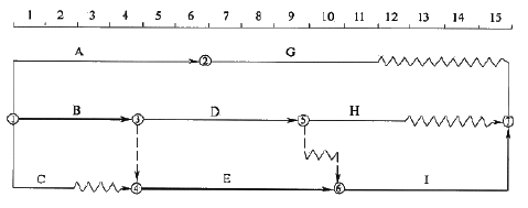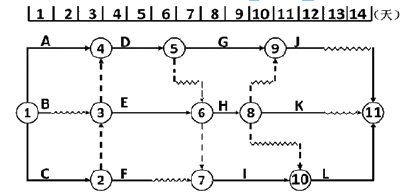 求取下图中各项工作的自由时差 某双代号时标网络计划如下图,工作F、工作H的最迟完成时间分别为( )末。