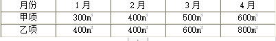 承包人1~4月份实际完成并经工程师签证确认的工程量分别为: