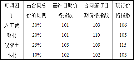 某工程施工合同约定:根据价格调整公式调整合同价,其中不调值部分占合同总价的比例为15%,可参与调值部分的费用类型、占合同