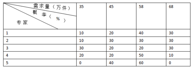 某组织5位专家进行产品需求量预测,预测数据见下表。则需求量预测的期望值是( )万件。