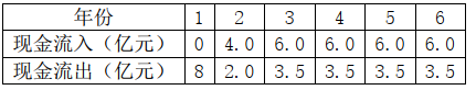 某投资方案的现金流量见下表(按年末发生计),若基准收益率为 12%,则该方案的净现值为( )亿元。
