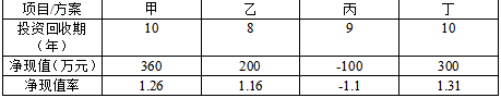 某项目有四个备选方案,各方案计算期相同,己知行业财务基准收益率为8%,各方案的数据见下表: