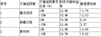 A 影响该项目内部收益率的最敏感因素是产品价格