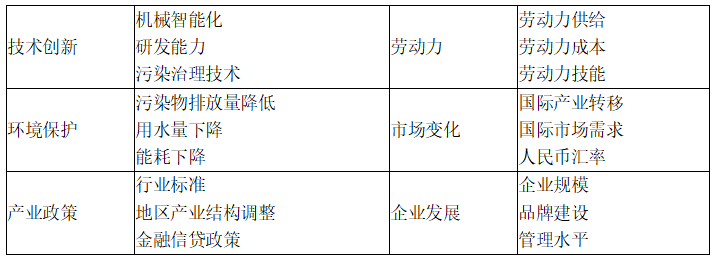 影响因素对该市产业发展的影响分值范围在-1到1之间,0代表没有影响,分值绝对数越大,代表影响力越强;影响分为负代表该因素的变化会对服装产业发展造成不利影响,影响分为正代表该因素变化对服装产业会带来积极正面影响。