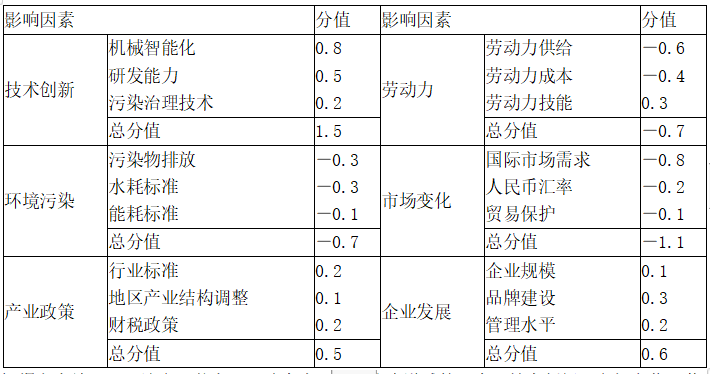 表2-17Z市服装产业发展主要影响因素专家打分情况