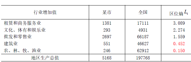 1.可以采用区位熵来计算该市具有全国比较优势的产业。