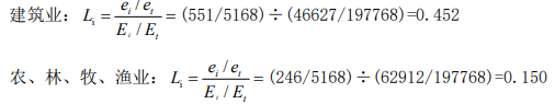 2.计算建筑业和农、林、牧、渔业的区位商。