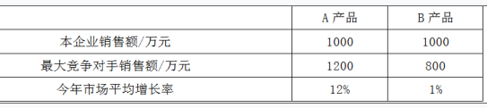 1.计算A、B产品的相对市场份额。画出波士顿矩阵,并根据计算结果画出A、B产品的位置,说明A、B产品分别属于何种业务。该企业对A、B产品应分别采取何种战略?