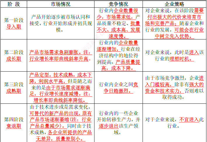情形①产品处于成长期;情形②产品处于成熟期;情形③产品处于衰退期;情形④产品处于导入期。