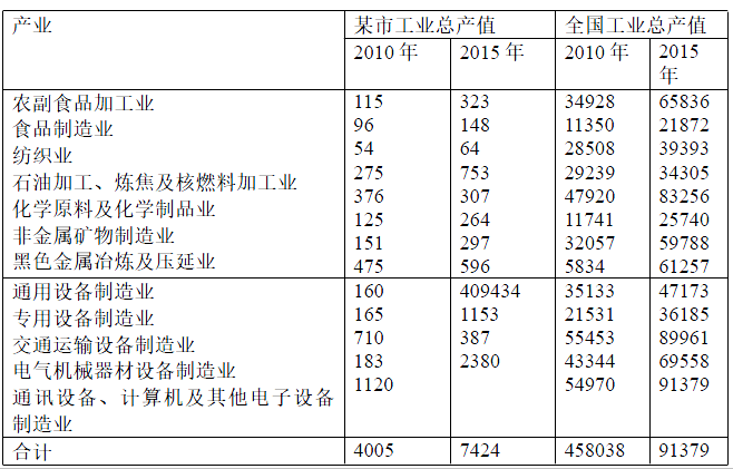 (1)根据表 3 ‐ 4 提供的数据计算 2010 ‐2015 年某市和全国部分产业部门工业总产值的增长量和增长率。