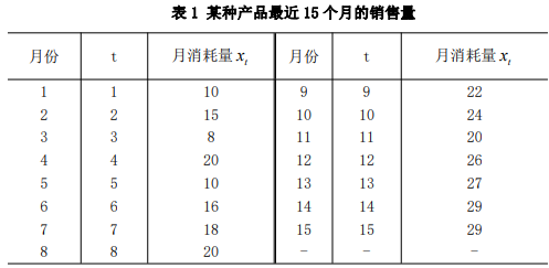 案例题 已知某种产品最近15个月的销售量如表1所示。