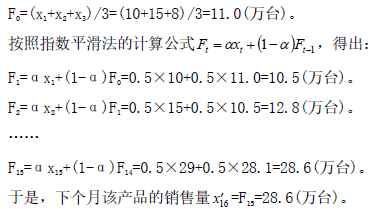 案例题 已知某种产品最近15个月的销售量如表1所示。 【问题】 1.试采用一次指数平滑值预测下个月的销售量(平滑系数取