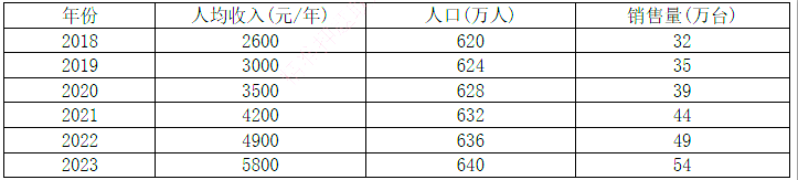 每万人该家用电器需求量为:844×(1+21.2%)=1023(台)。