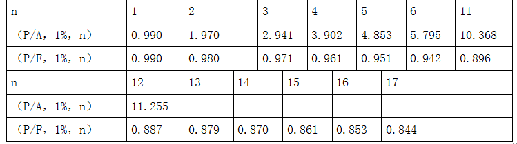 PV 基=(1200/3)(P/A,1%,3)(P/F,1%,1)+(3960/12)(P/A,1%,12)(P/F,1%,4)+30(P/F,1%,16)-60