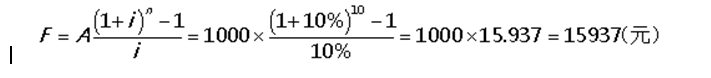 案例题 某投资人拟在10年内,每年末存1000元,年利率10%,问10年末本利和为多少?