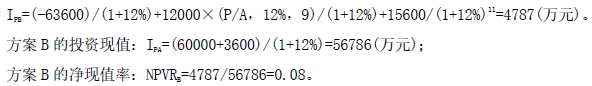 方案 B 第 11 年末净现金流量=36000-24000+3600=15600(万元);