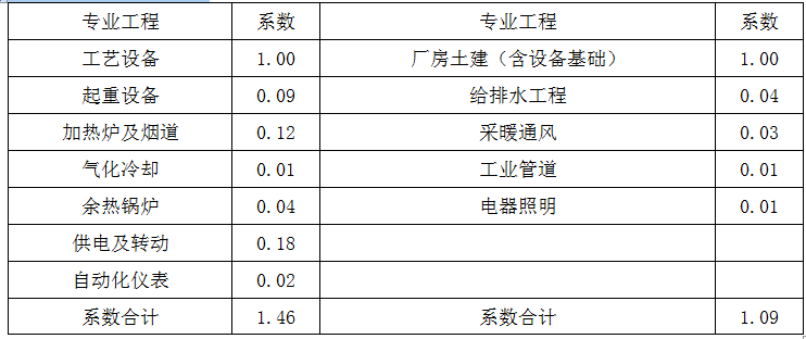表 专业工程投资系数