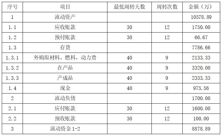将上述计算得出的数据整理,可得出流动资金估算表: